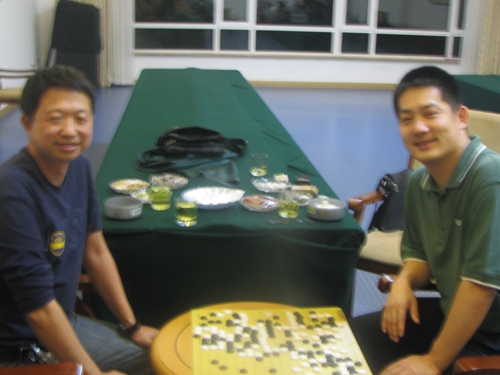 光临本市的世界冠军常昊九段和方圆围棋学校校长崔勇5段切磋棋艺