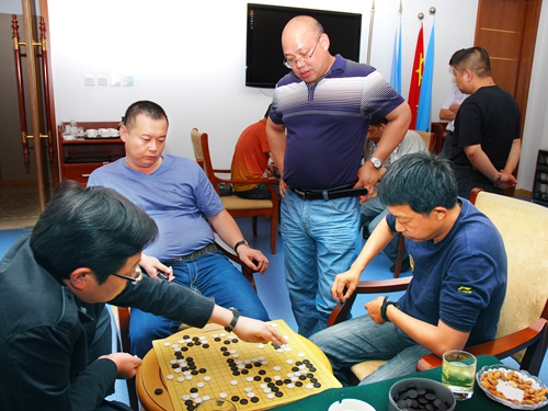 方圆围棋学校校长崔勇5段和光临本市的李星职业六段对弈中