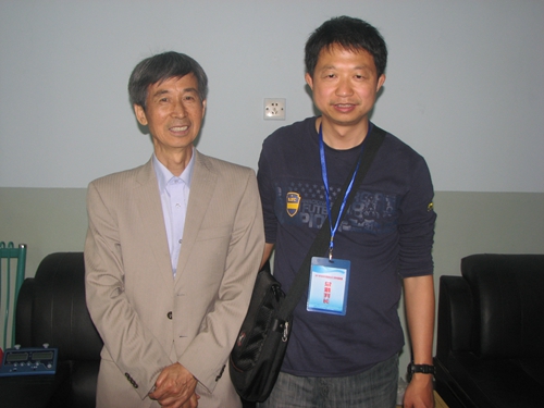 方圆围棋学校校长崔勇5段与光临本市的国家围棋协会主席王汝南八段合影留念