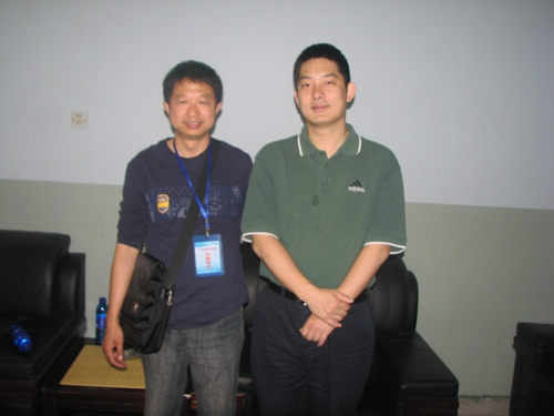 方圆围棋学校校长崔勇5段与光临本市的世界冠军常昊九段合影留念