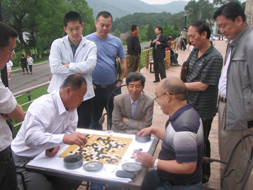 国家围棋协会主席王汝南、世界冠军常昊九段、李星六段和吉林市围棋爱好者切磋棋艺