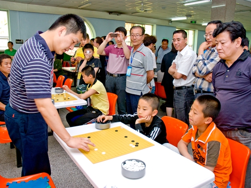 光临本市的世界冠军常昊九段和方圆小棋手进行精彩的车轮大战